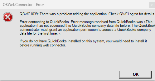 If you are getting an error that says QBWC1039 when trying to connect to the QB Web Connector, please follow these steps: