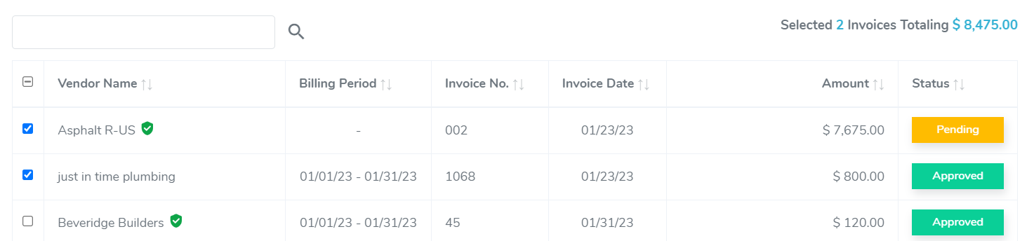 Start by going into the Accounts Payable tab, and navigate to the invoice[s] you want to send. If you need to send more than one invoice you can bulk send by clicking the βοΈ Checkbox at the top to select all.