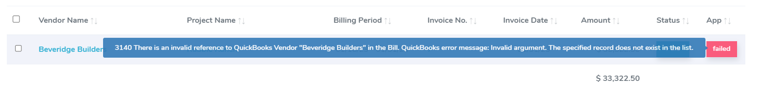 π‘ If an invoice fails to sync, find it in the Failed to be Sent to App tab and hover over the Failed status. This will show you exactly what went wrong.