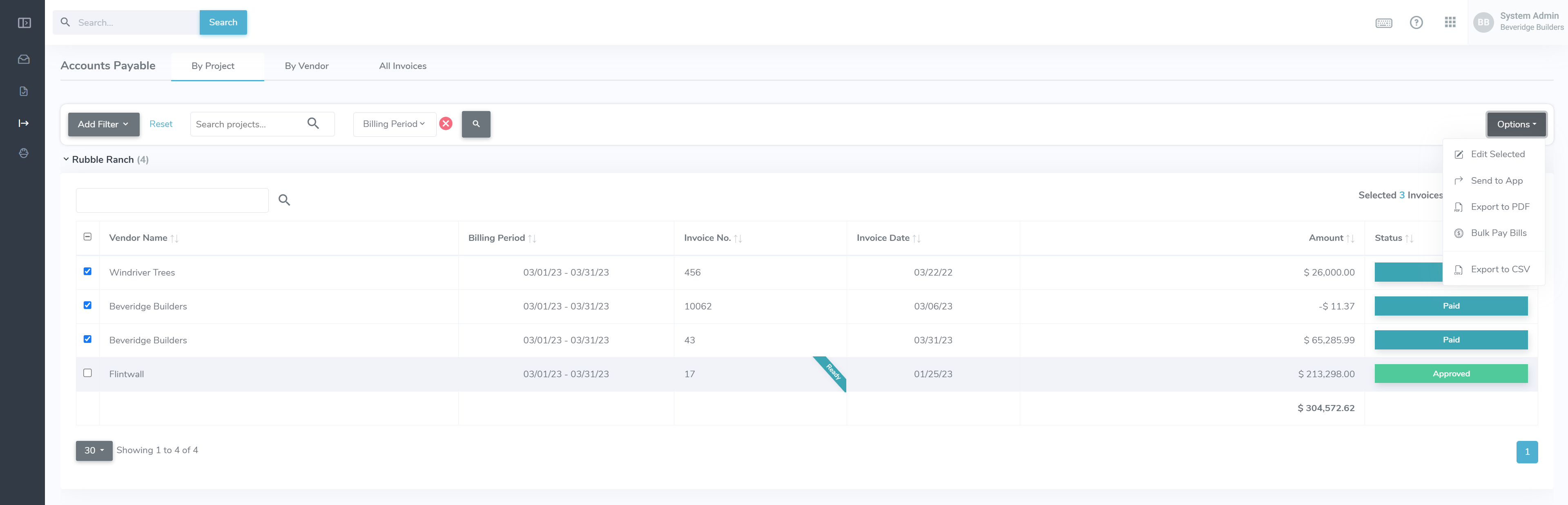 To initiate a bulk payment for a number of invoices, follow the steps below. This WILL initiate a transfer of funds, and only has a short window of opportunity to be refunded.