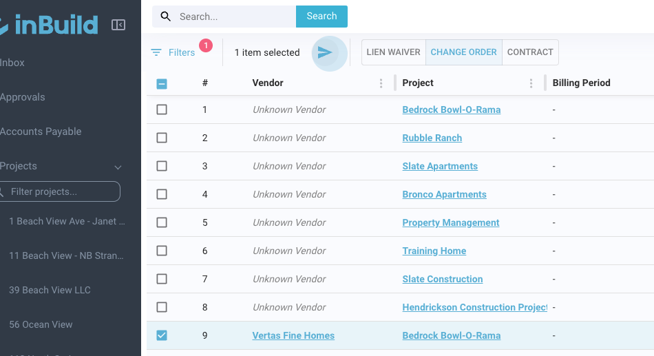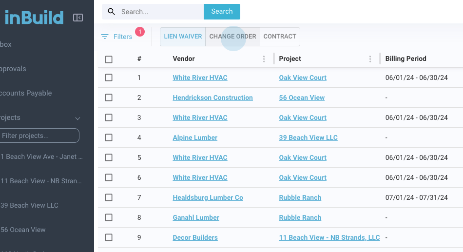 Step 2: Choose the change order to send for signature and approval. Click on the selected change order.