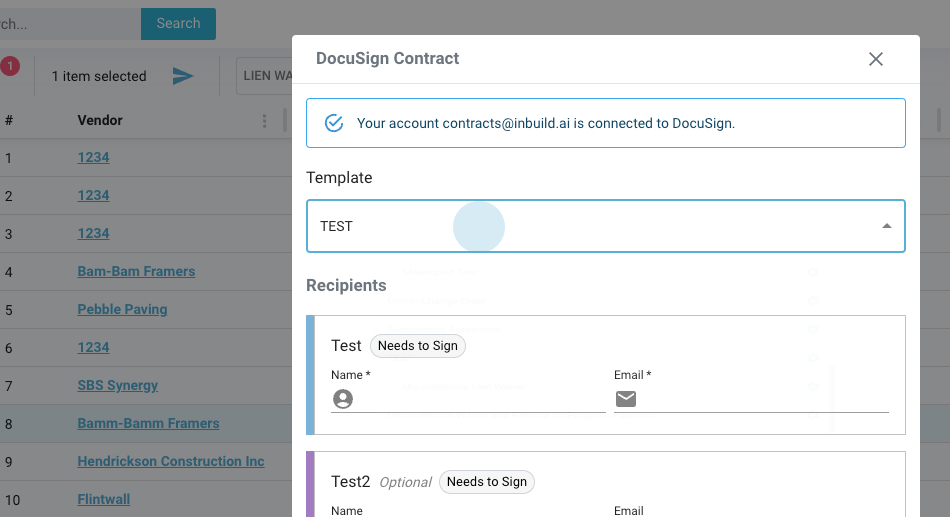 Sending Contracts and Change Orders via DocuSign