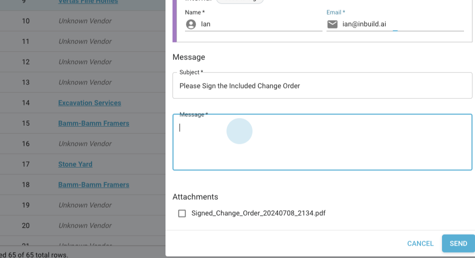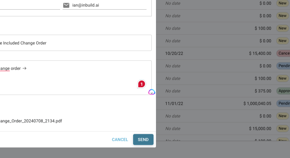 Step 6: After ensuring everything is correct, click Send to dispatch the change order.