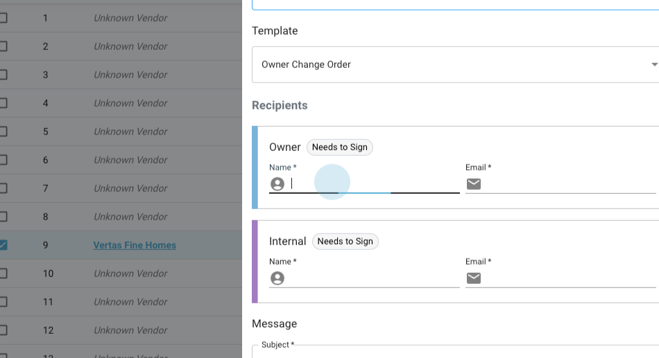 Step 5: Add a message, such as "Please sign change order." If necessary, attach additional documents.