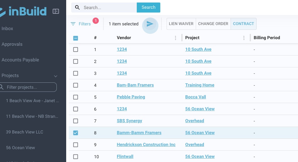 Step 2: All documents listed as contracts will appear. Choose the contract to send.