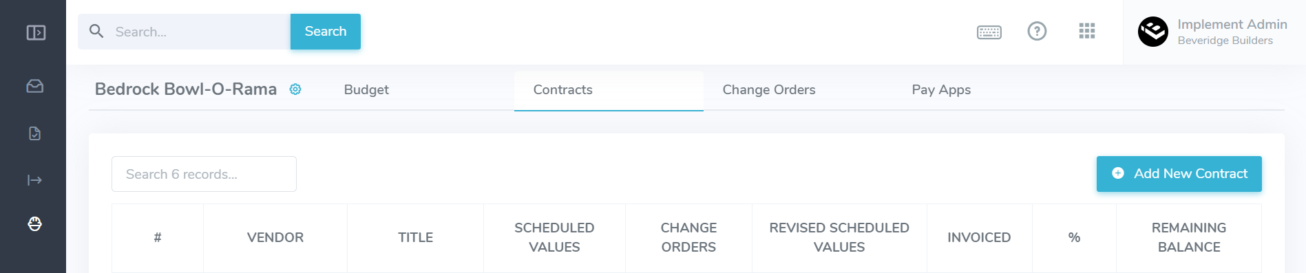 To create a contract from within a Project navigate to the desired project page and open the Contracts tab. From here, click on ➕ Add New Contract.