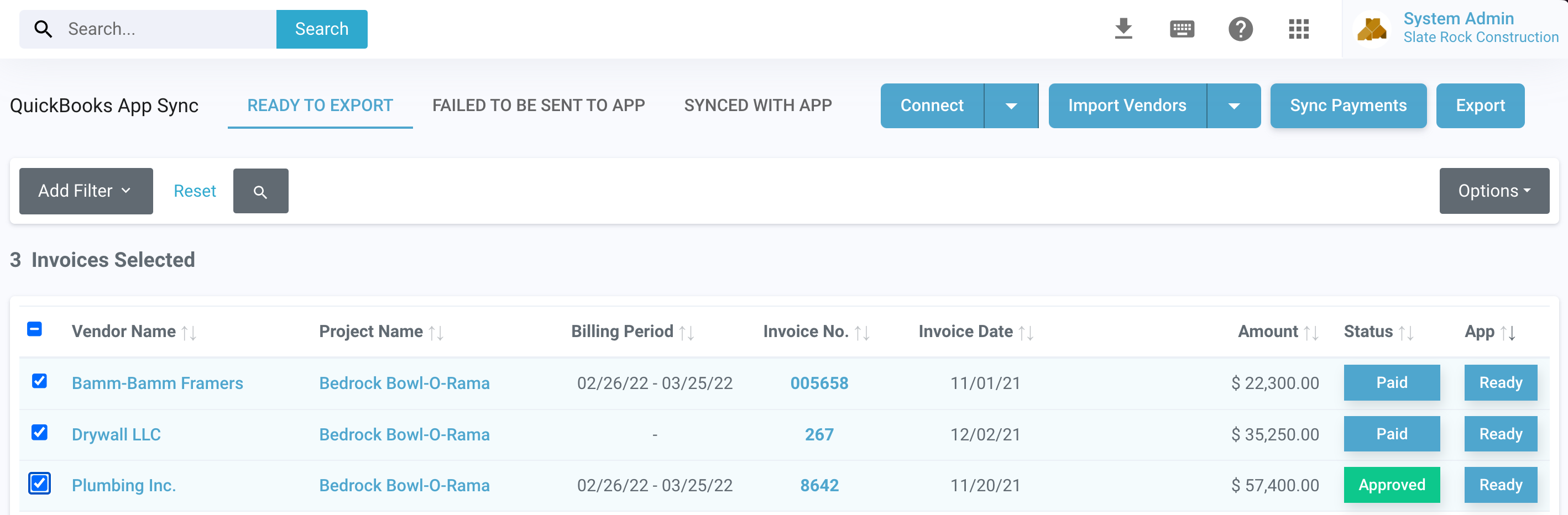 Select Invoices You Want to Sync